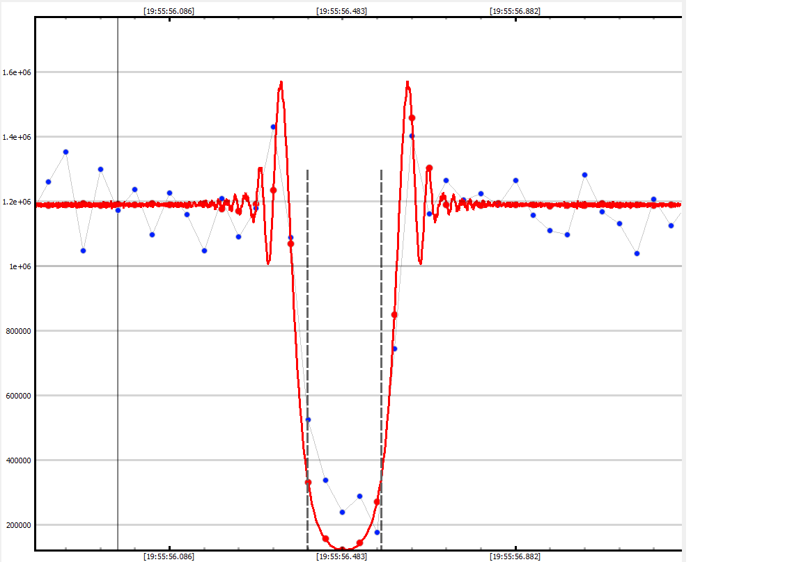 Začiatok zákrytu nastal o 19:55:56,404 UTC +/- 0,013s; koniec o 19:55:56,572 UTC +/- 0,013s. Celková dĺžka zákrytu je 0,168s +/-0,013s.